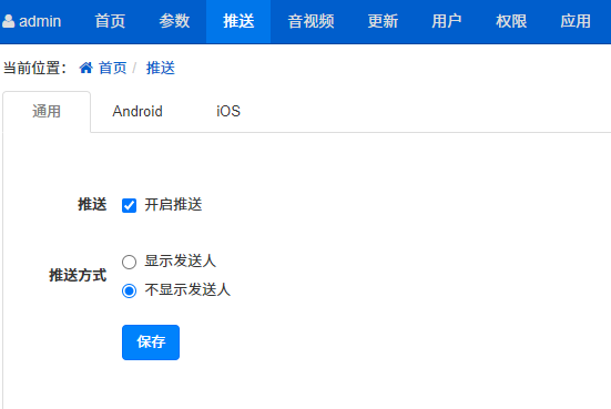 在喧喧xxb后台--推送--通用,你可以设置是否开启推送,以及设置喧喧消息推送的显示方式。默认的显示方式是:不显示发送人。