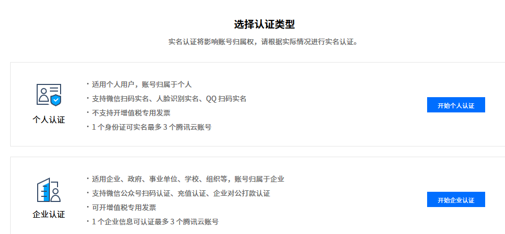 登录或者是注册成功后,需要进行实名认证,实名认证有个人认证和企业认证,请根据实际使用需要进行认证。