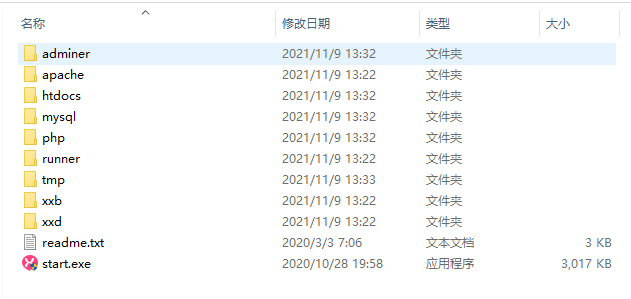 - 首先进入一键包解压后的目录,点击 start.exe 启动喧喧集成运行环境: