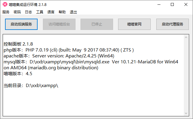 - 在喧喧集成运行环境面板上点击启动后端服务: