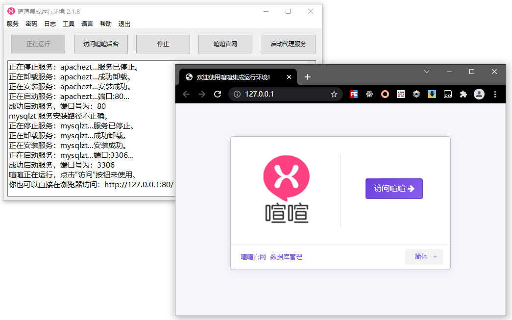 喧喧 Windows 一键包内置 MySQL 数据库,可通过图形界面和命令行两种方式进行数据库访问及操作,具体步骤如下: