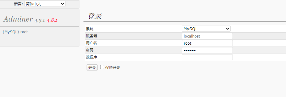 - 输入用户名 root 和默认密码 123456 并点击登录: