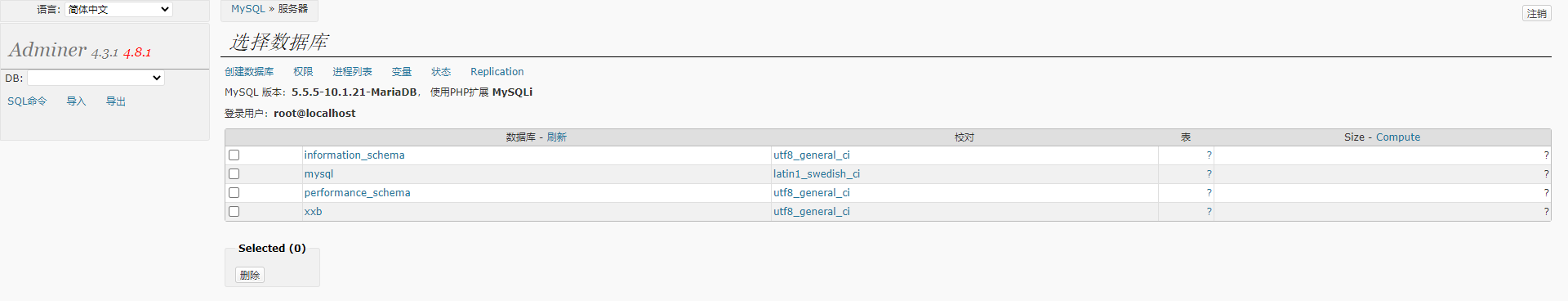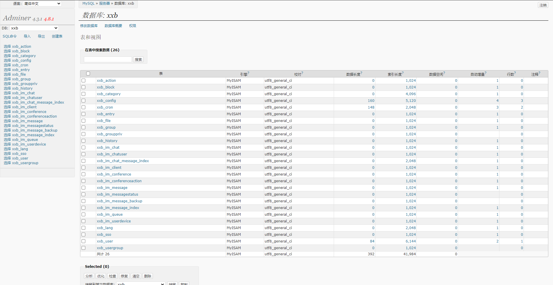- 喧喧默认的数据库为 xxb,点击即可访问: