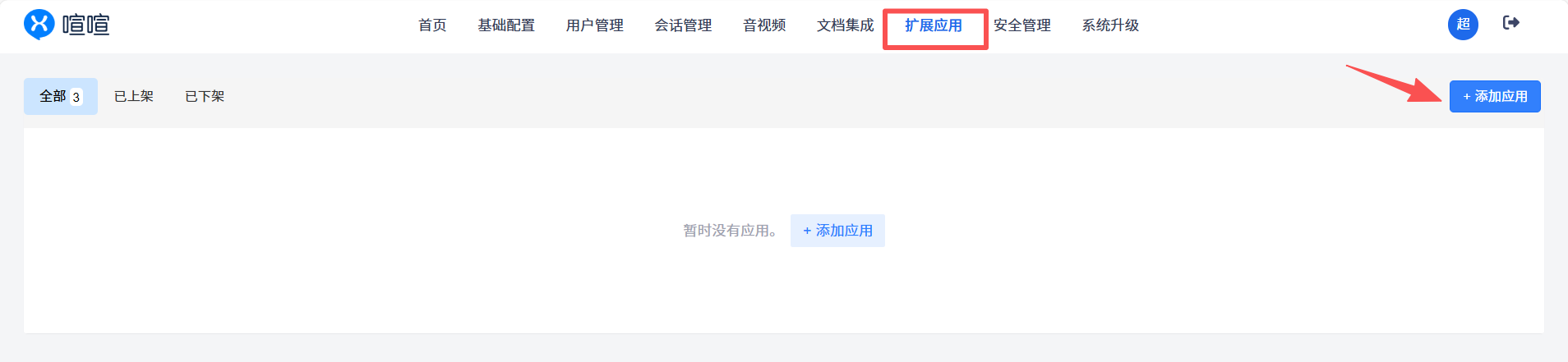 点击页面右上角的添加应用。