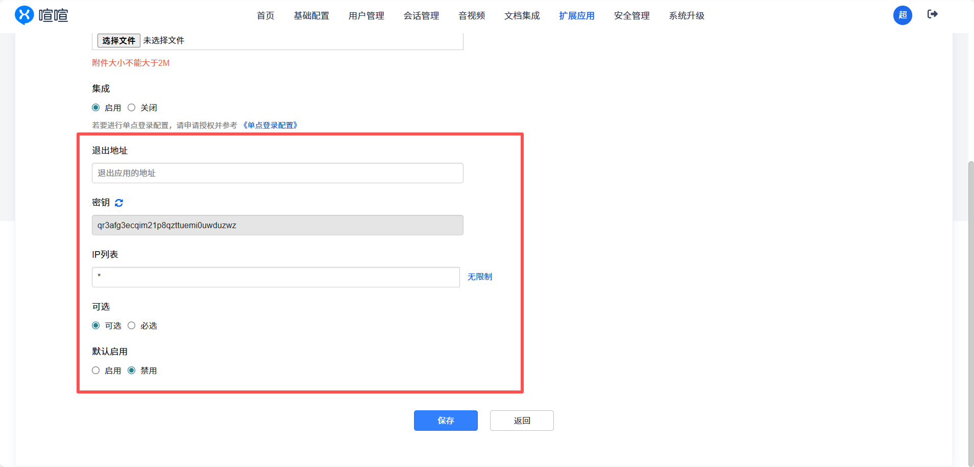 选中启用后,默认会生成密钥,你也可以点击后面的“重新生成密钥”来生成新的密钥。