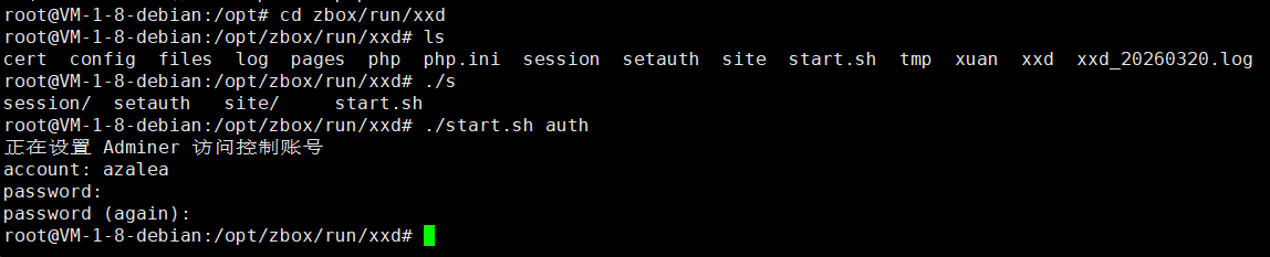 进入/opt/zbox/run/xxd目录,执行命令 ,根据提示输入信息