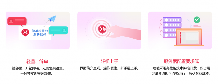 - 高性能轻量级: 其核心的消息中转服务器(XXD)采用高性能的 Go 语言 开发,具备极高的高并发处理能力和极低的资源占用率。企业无需采购昂贵的服务器集群,普通配置即可支撑万人在线。