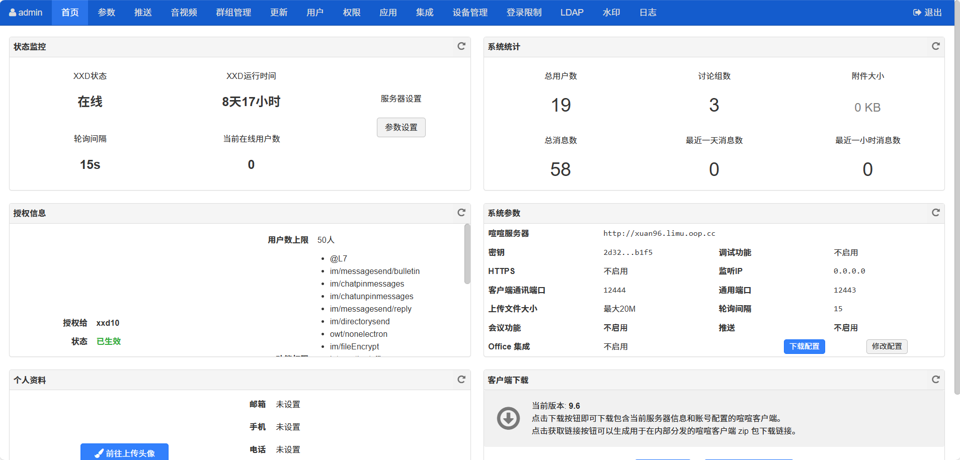 ▼ 后端框架重构:后端处理服务器(XXB)已迁移到 FrankPHP 平台运行,同时将聊天相关的 PHP 接口以 Go 语言重构,提高并发处理能力与稳定性。 消息服务整合:FrankPHP 已集成到消息中转服务器(XXD)中,简化部署流程——新用户仅需安装 XXD 和客户端即可完成服务端安装,大幅提高一次性安装成功率。