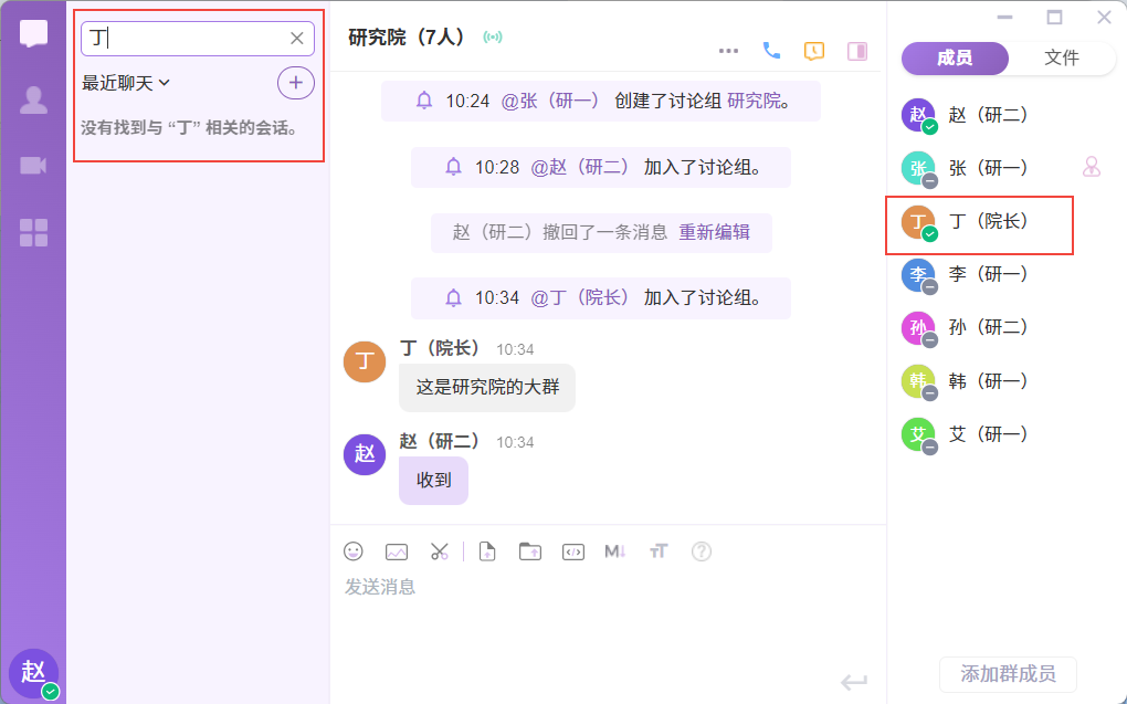 - 可向下级部门发起聊天