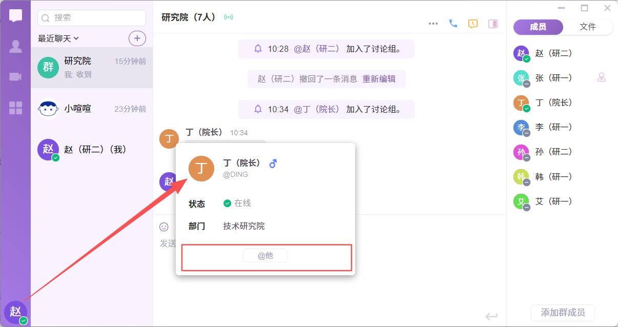 - 部门内可以互相发起聊天