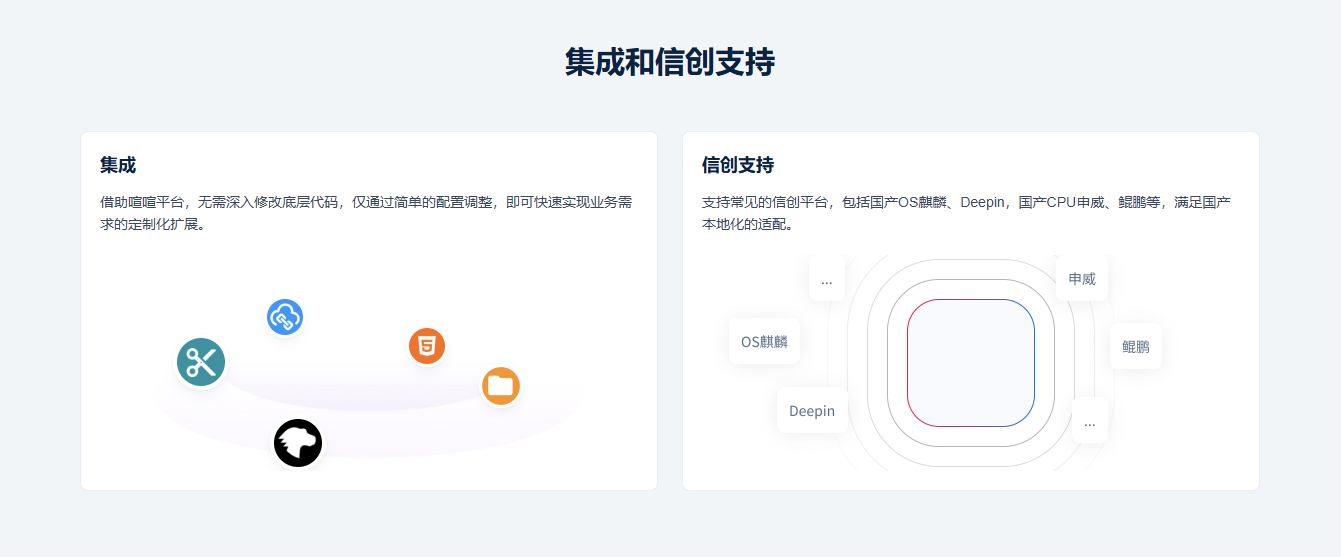 国产信创适配:支持麒麟、鲲鹏、龙芯等国产芯片及操作系统,满足军工行业自主可控要求。