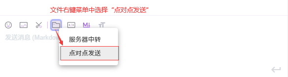 ▼ 新增点对点发送文件功能,通过文件右键菜单选择,发送后可以接收、拒收、取消传输。