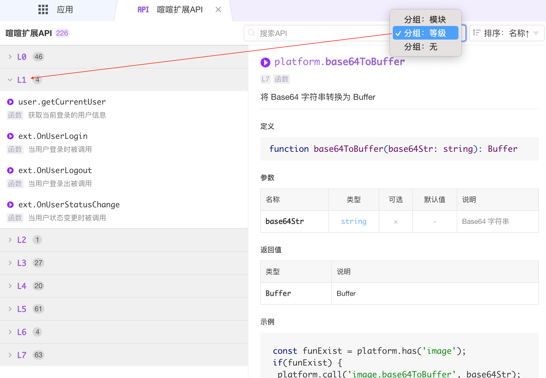 ▼ 可以按级别分组查看API。