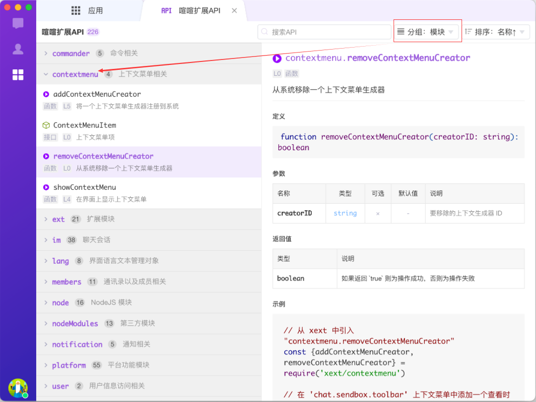 ▼ 可以按模块分组查看API。