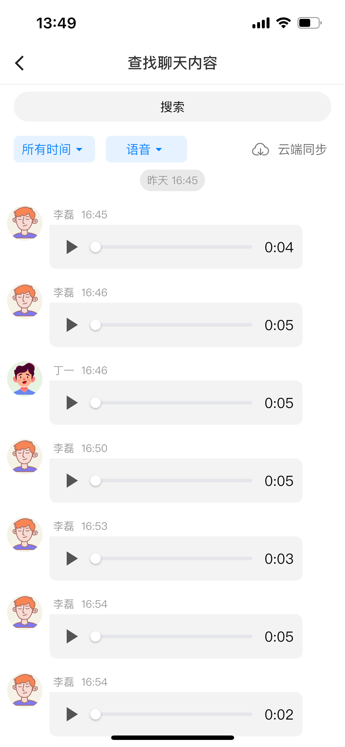 ▼ 语音消息未点击播放时提供红点提示,会话列表支持语音消息的主题高亮渲染。
