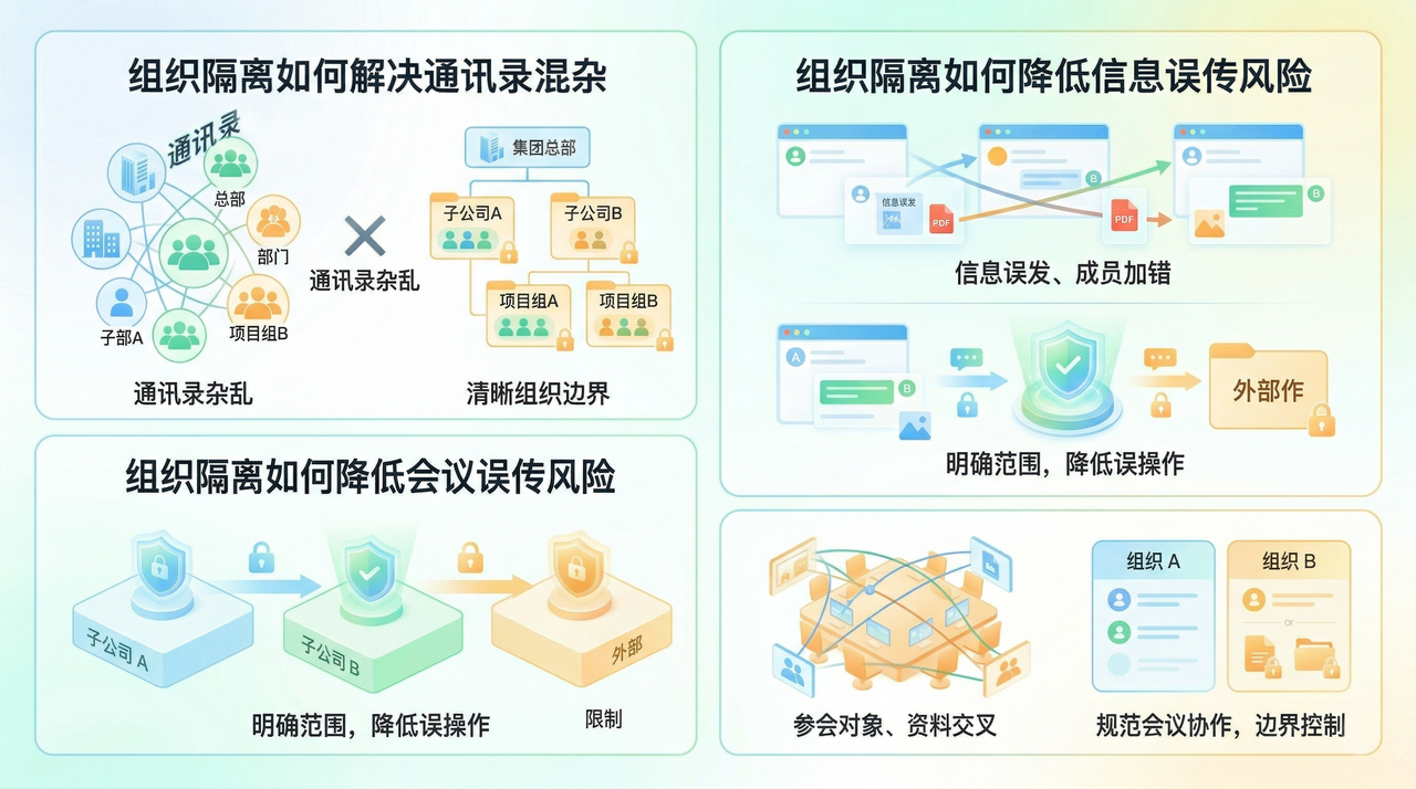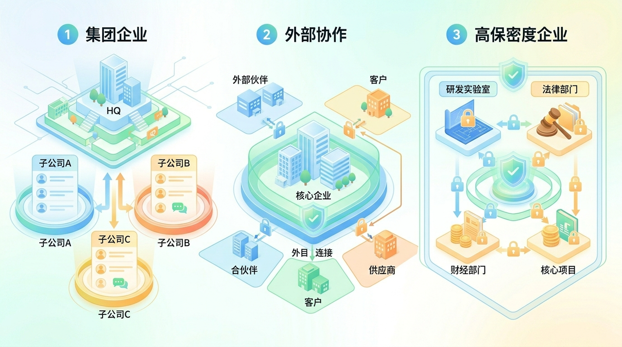 很多信息泄露并不是故意造成的,而是在日常使用中,因为系统范围过大、边界不清,导致消息发错、成员加错或文件共享范围失控。提前把组织边界设定清楚,本质上就是通过系统规则减少使用中的失误。