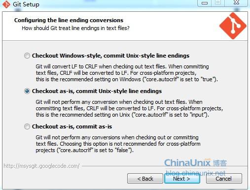 next 进入到一下界面,选择 Checkout as-is, commit Unix-style line endings