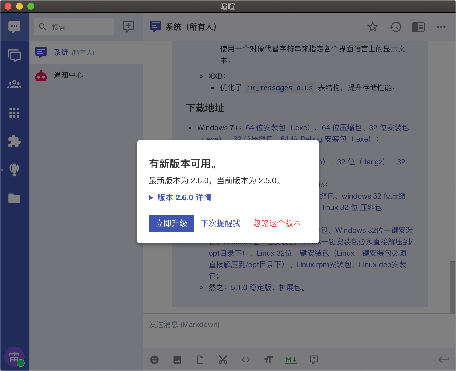 - 修复 了在一些情况下,消息发送框中输入 @用户 没有高亮效果的问题;