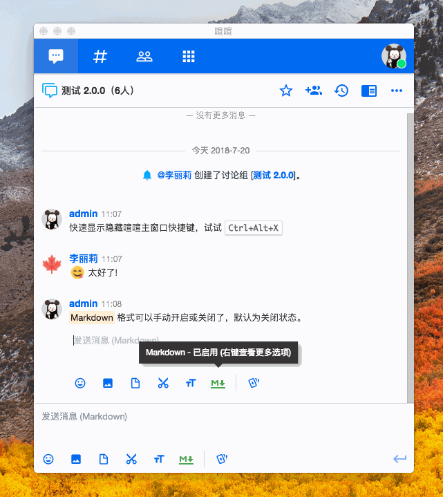 - 优化了输入框工具栏上 Markdown 图标的可见度;