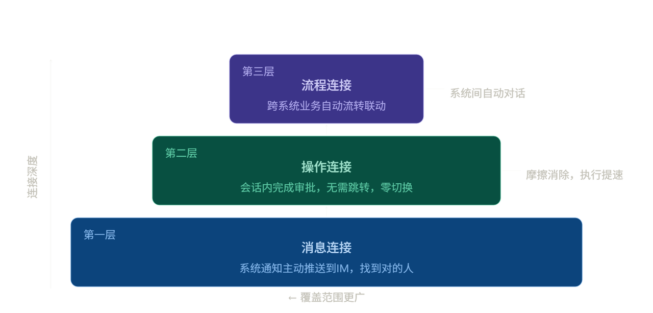 把系统的触点延伸到员工的"大本营",信息才真正"找到了人",流程才真正"推动了人"。这正是企业IM成为连接器的底层逻辑。