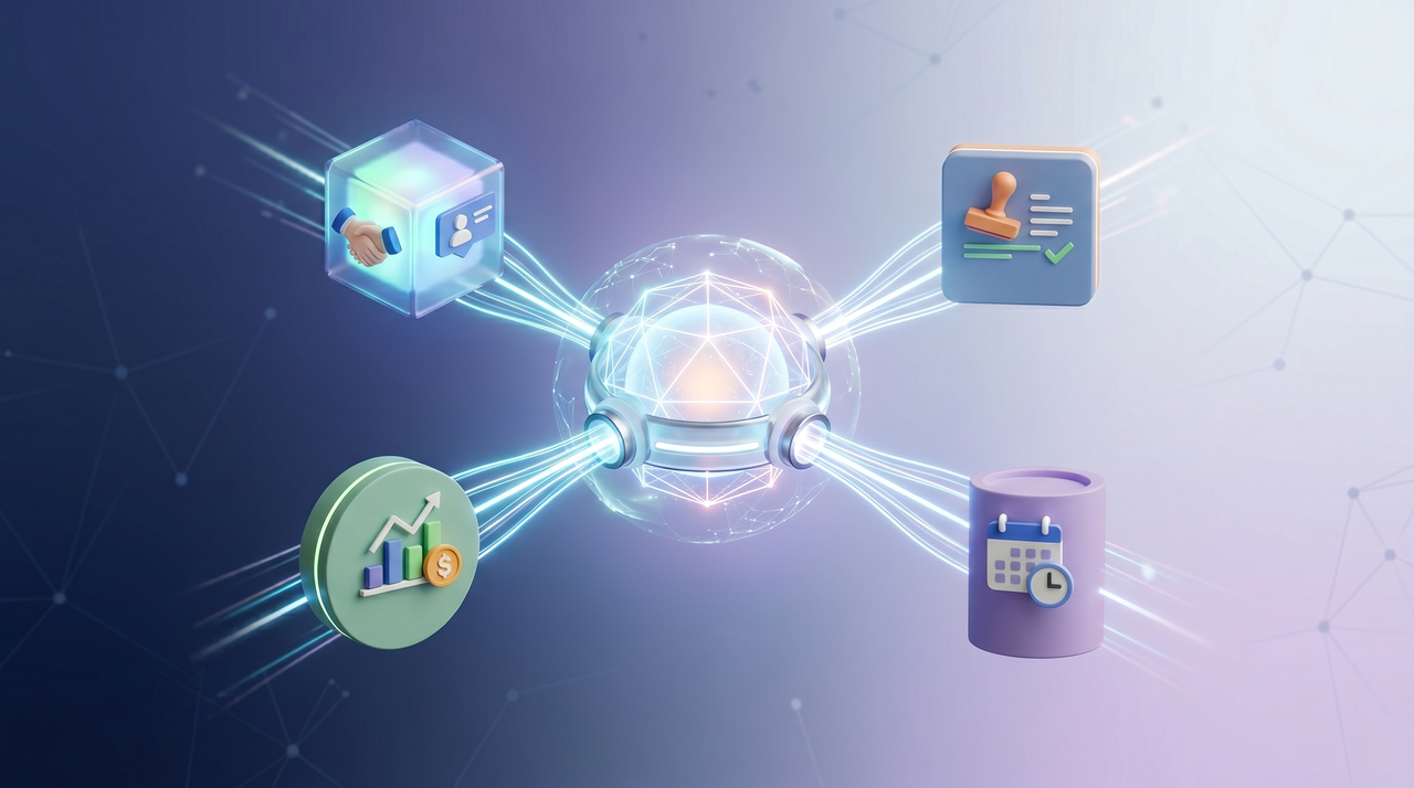 CRM里的合同状态变为"已签署",自动触发IM通知财务开票,同时抄送项目负责人启动交付。