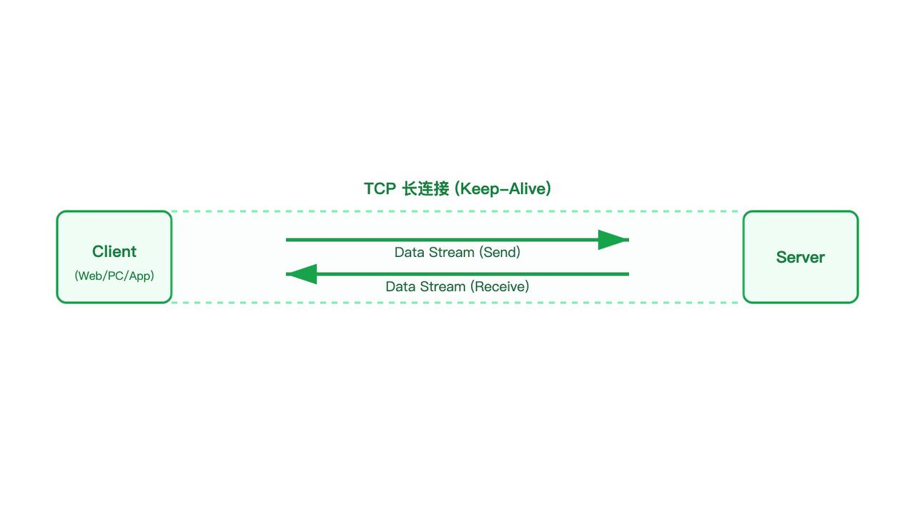 复用 80 或 443 端口,使它在企业网络、防火墙环境中几乎没有穿透问题;浏览器原生支持,也让 Web 端 IM 不再需要插件或特殊方案。
